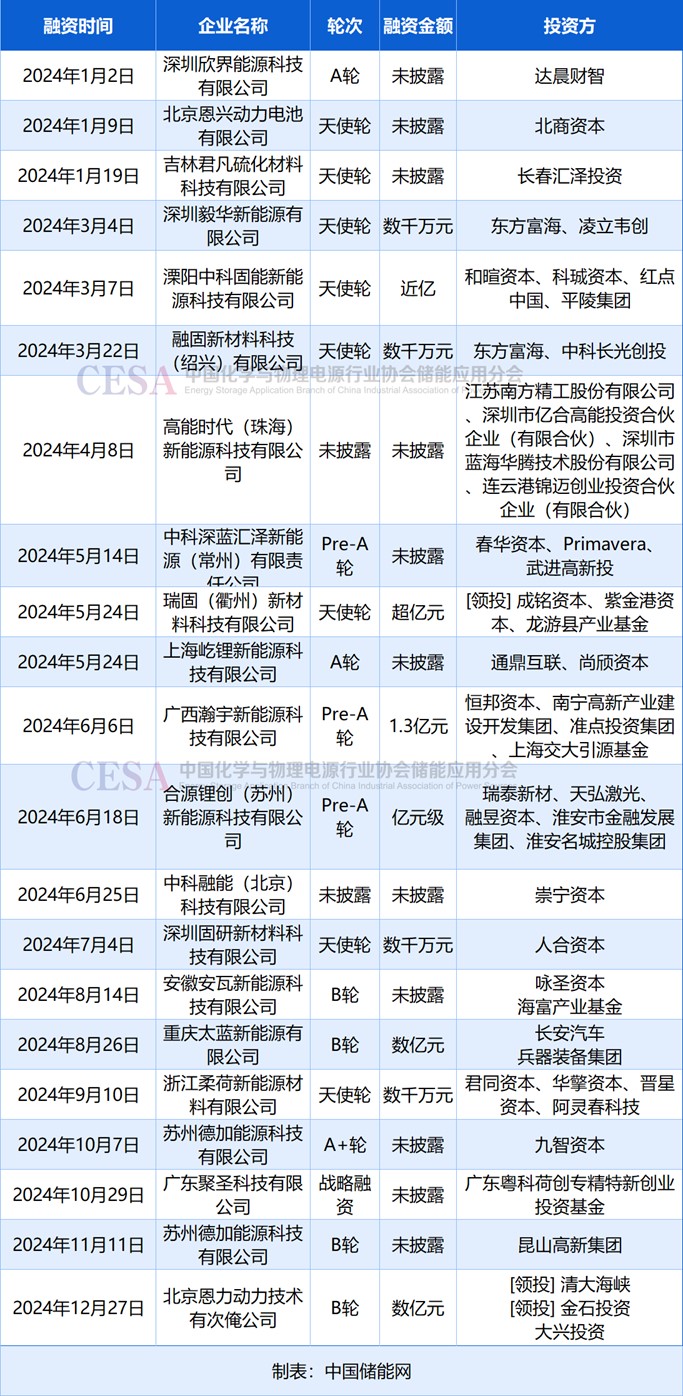 表:2024年固態(tài)/半固態(tài)電池企業(yè)部分融資事件