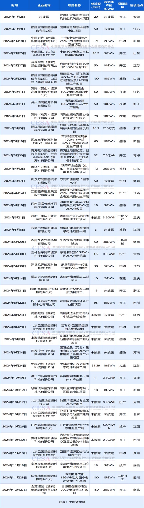 表:2024年部分半固態(tài)/固態(tài)電池儲能擴(kuò)產(chǎn)項(xiàng)目