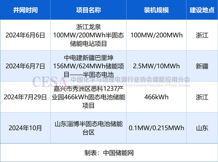 表:2024年半固態(tài)/固態(tài)電池儲能投運(yùn)項(xiàng)目
