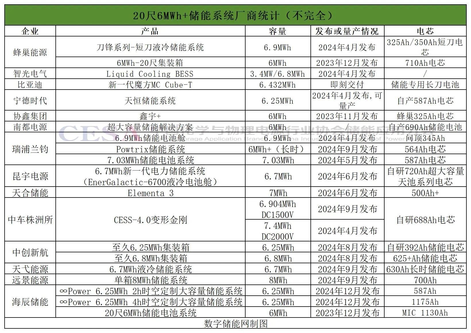 2024年4月,寧德時(shí)代發(fā)布6.25MWh儲(chǔ)能系統(tǒng),引領(lǐng)系統(tǒng)集成賽道迅速向6MWh+儲(chǔ)能系統(tǒng)更新迭代,據(jù)中國(guó)儲(chǔ)能網(wǎng)不完全統(tǒng)計(jì),2024年以來(lái)共有14家企業(yè)發(fā)布了21個(gè)6MWh+儲(chǔ)能系統(tǒng)產(chǎn)品。
