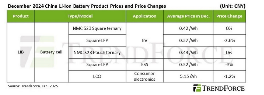 TrendForce公司表示,“這有望支撐關(guān)鍵電池材料(如磷酸鐵鋰、電池銅箔和電解質(zhì))的價格穩(wěn)定,從而使促電池平均價格在2025年第一季度趨于穩(wěn)定?!?