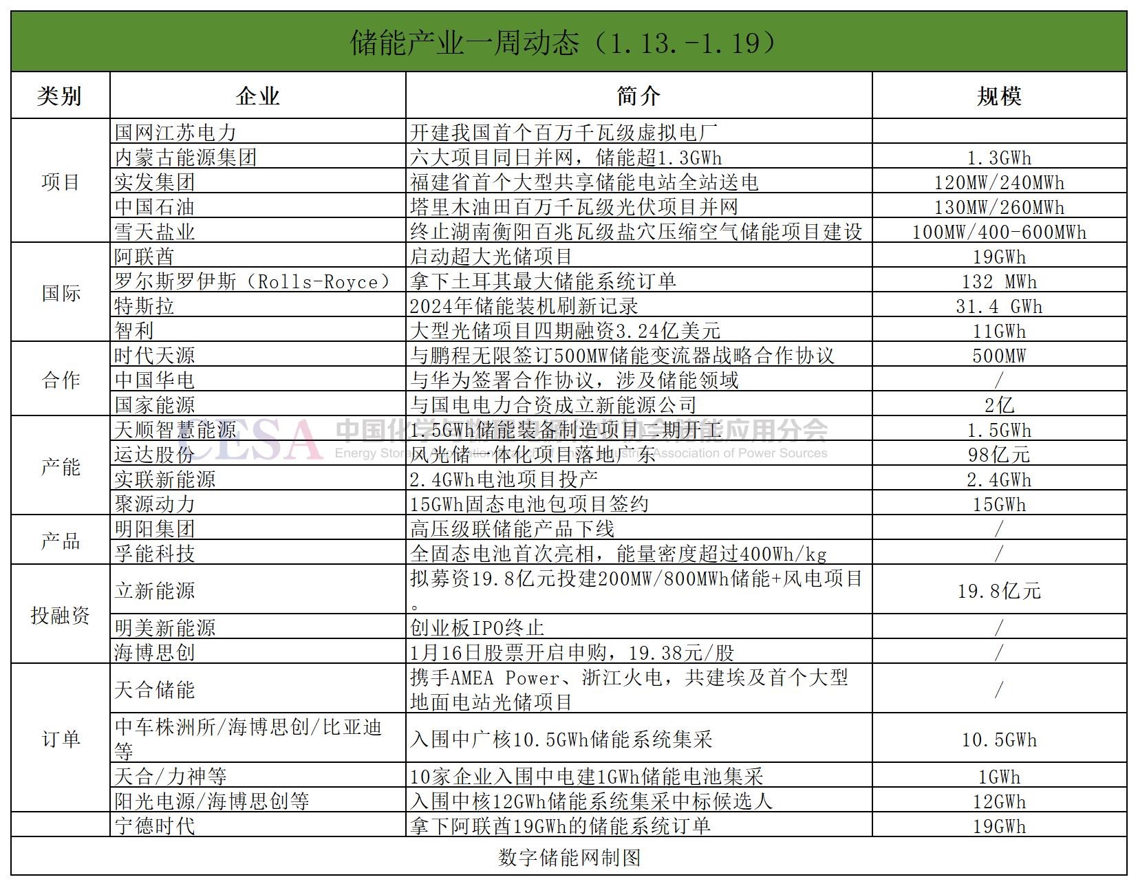 投融資方面,海博思創(chuàng)1月16日開(kāi)啟申購(gòu),19.38元/股;立新能源擬募資19.8億元投建200MW/800MWh儲(chǔ)能+風(fēng)電項(xiàng)目;明美新能源創(chuàng)業(yè)板IPO終止。