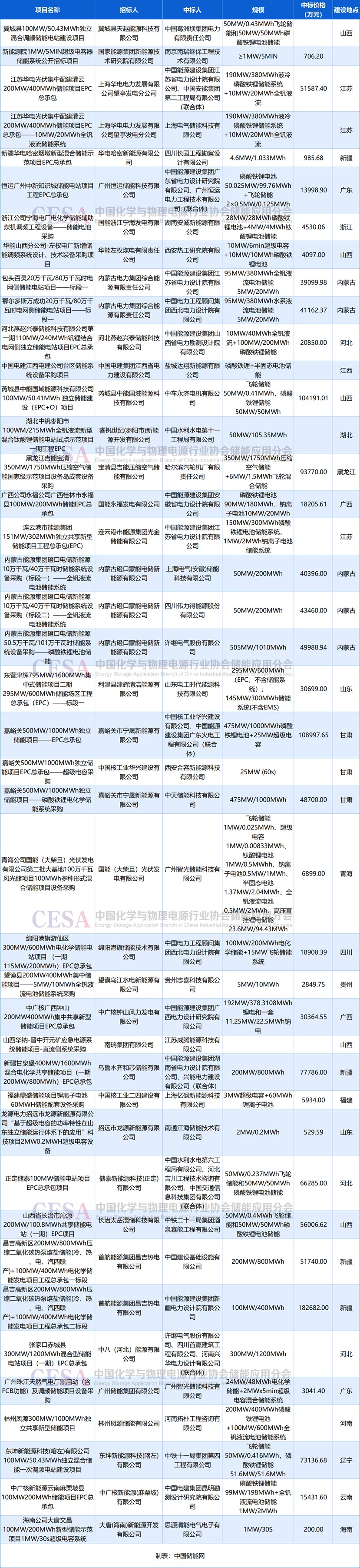 表 2024年部分混合儲(chǔ)能采招落地項(xiàng)目