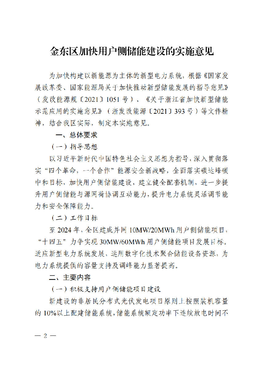 表示至2024年,全區(qū)建成并網(wǎng)10MW/20MWh用戶側(cè)儲(chǔ)能項(xiàng)目,“十四五”力爭(zhēng)實(shí)現(xiàn)30MW/60MWh 用戶側(cè)儲(chǔ)能項(xiàng)目發(fā)展目標(biāo)。要求新建設(shè)的非居民分布式光伏發(fā)電項(xiàng)目原則上按照裝機(jī)容量的10%以上配建儲(chǔ)能系統(tǒng),儲(chǔ)能系統(tǒng)額定功率下連續(xù)放電時(shí)間不低于2小時(shí),提高光伏發(fā)電就地消納能力。光伏項(xiàng)目配建的儲(chǔ)能系統(tǒng)可自建或采用儲(chǔ)能配額置換交易模式。鼓勵(lì)企業(yè)用戶或綜合能源服務(wù)商根據(jù)負(fù)荷特性建設(shè)儲(chǔ)能設(shè)施,充分利用目錄分時(shí)電價(jià)機(jī)制,主動(dòng)削峰填谷,優(yōu)化區(qū)域電網(wǎng)負(fù)荷需求。