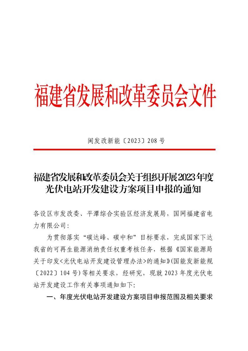 中國儲能網(wǎng)訊:5月30日,福建省發(fā)展和改革委員會發(fā)布了,關(guān)于組織開展2023年度光伏電站開發(fā)建設(shè)方案項(xiàng)目申報(bào)的通知。