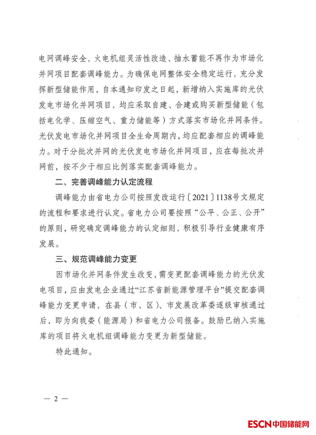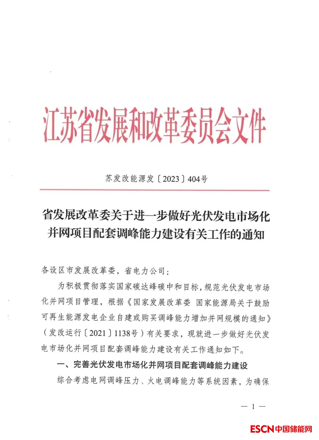 中國(guó)儲(chǔ)能網(wǎng)訊:4月17日,江蘇省發(fā)展改革委發(fā)布《關(guān)于進(jìn)一步做好光伏發(fā)電市場(chǎng)化并網(wǎng)項(xiàng)目配套調(diào)峰能力建設(shè)有關(guān)工作的通知》(文件原文附后),文件提出: