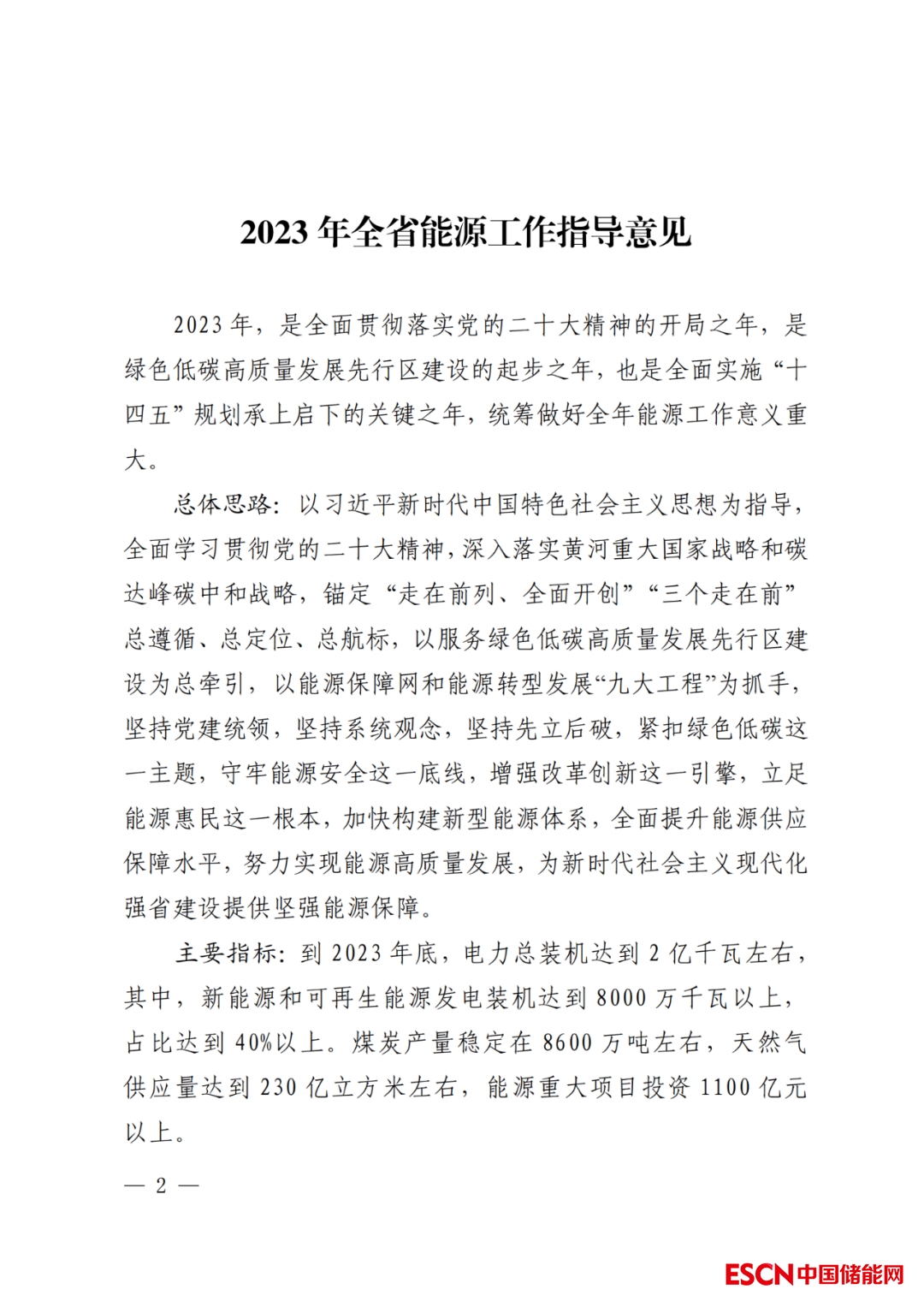 到2023年底,電力總裝機(jī)達(dá)到2億千瓦左右,其中,新能源和可再生能源發(fā)電裝機(jī)達(dá)到8000萬千瓦以上,占比達(dá)到40%以上。煤炭產(chǎn)量穩(wěn)定在8600萬噸左右,天然氣供應(yīng)量達(dá)到230億立方米左右,能源重大項目投資1100億元以上。