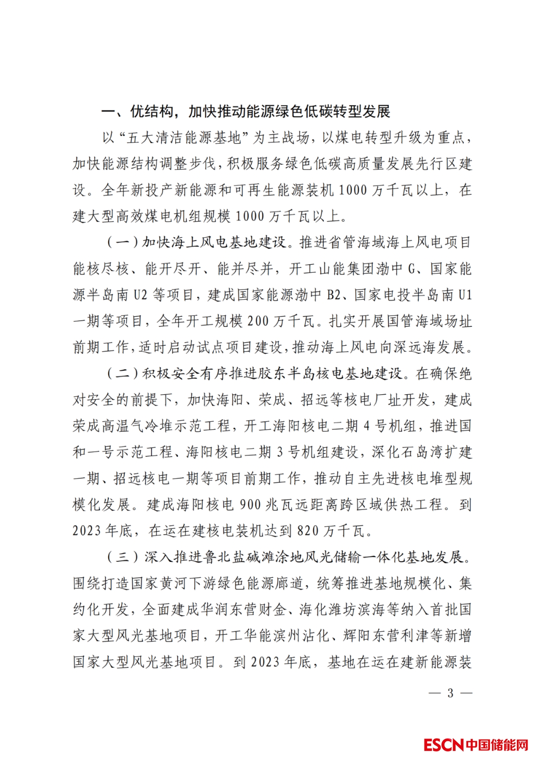 深入推進(jìn)魯北鹽堿灘涂地風(fēng)光儲輸一體化基地發(fā)展:圍繞打造國家黃河下游綠色能源廊道,統(tǒng)籌推進(jìn)基地規(guī)模化、集約化開發(fā),全面建成華潤東營財金、?;癁H坊濱海等納入首批國家大型風(fēng)光基地項目,開工華能濱州沾化、輝陽東營利津等新增國家大型風(fēng)光基地項目。到2023年底,基地在運在建新能源裝機(jī)達(dá)到700萬千瓦。