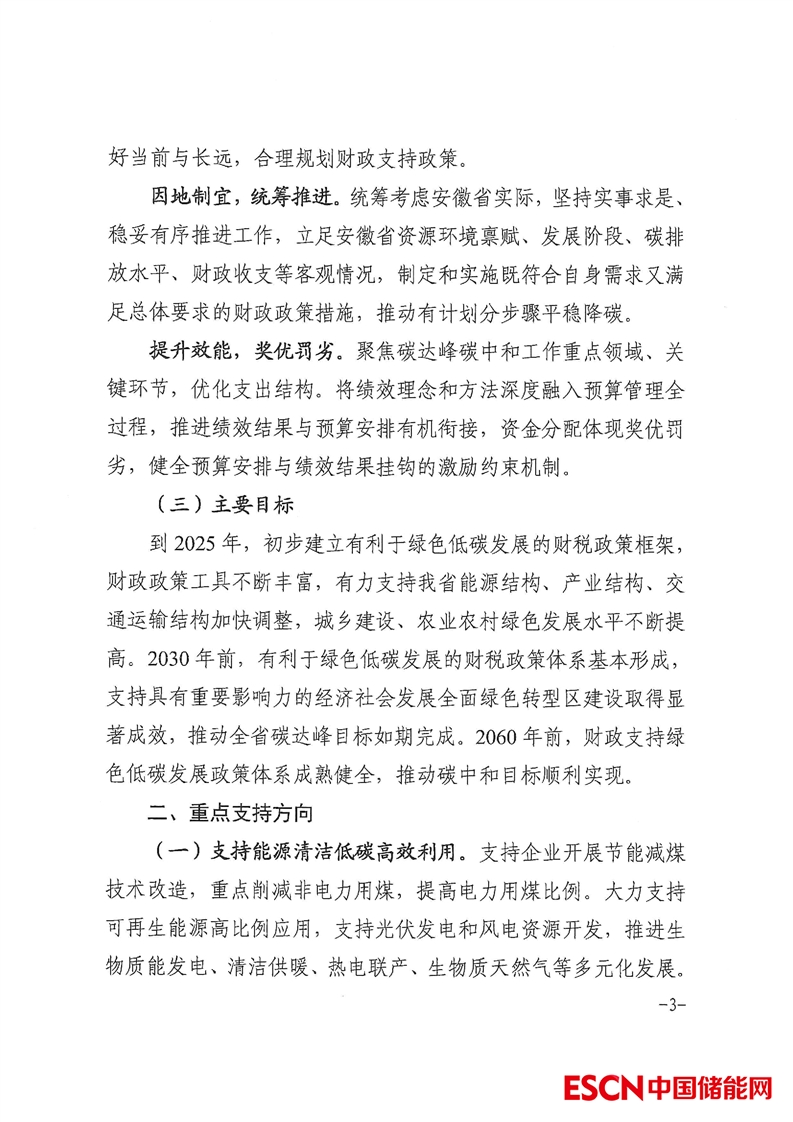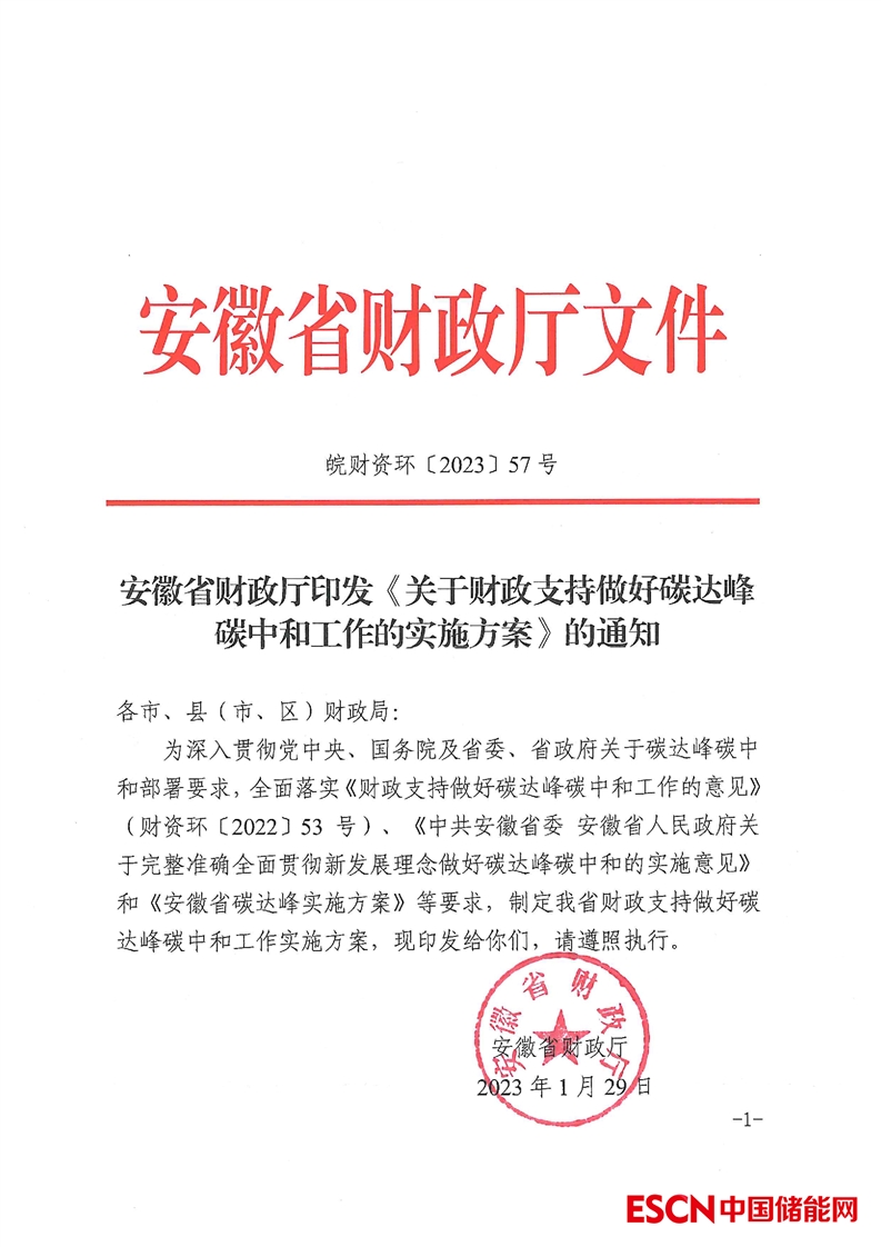 中國儲能網(wǎng)訊:近日,安徽省財政廳印發(fā)《關(guān)于財政支持碳達峰碳中和工作的實施方案》?!秾嵤┓桨浮分赋觯谥攸c支持方向上,將聚焦能源清潔低碳高效利用、重點行業(yè)領(lǐng)域綠色低碳轉(zhuǎn)型、綠色低碳科技創(chuàng)新體系建設(shè)、綠色低碳生活和資源節(jié)約利用、碳匯能力鞏固提升、健全綠色低碳市場體系等六個方面。