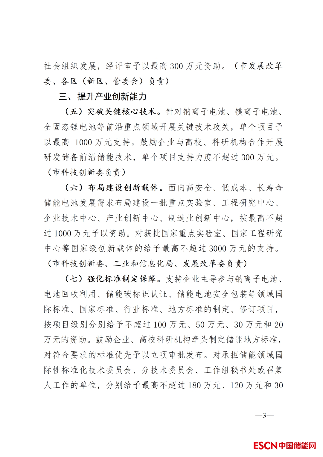 面向高安全、低成本、長壽命儲能電池發(fā)展需求布局建設一批重點實驗室、工程研究中心、企業(yè)技術中心、產(chǎn)業(yè)創(chuàng)新中心、制造業(yè)創(chuàng)新中心,按最高不超過1000萬元予以資助。