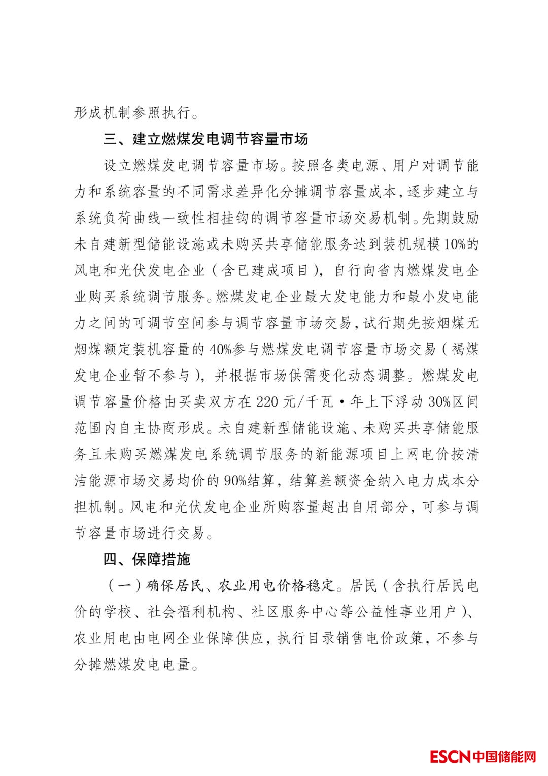 未自建新型儲(chǔ)能設(shè)施、未購(gòu)買共享儲(chǔ)能服務(wù)且未購(gòu)買燃煤發(fā)電系統(tǒng)調(diào)節(jié)服務(wù)的新能源項(xiàng)目上網(wǎng)電價(jià)按清潔能源市場(chǎng)交易均價(jià)的90%結(jié)算,結(jié)算差額資金納入電力成本分擔(dān)機(jī)制。風(fēng)電和光伏發(fā)電企業(yè)所購(gòu)容量超出自用部分,可參與調(diào)節(jié)容量市場(chǎng)進(jìn)行交易。