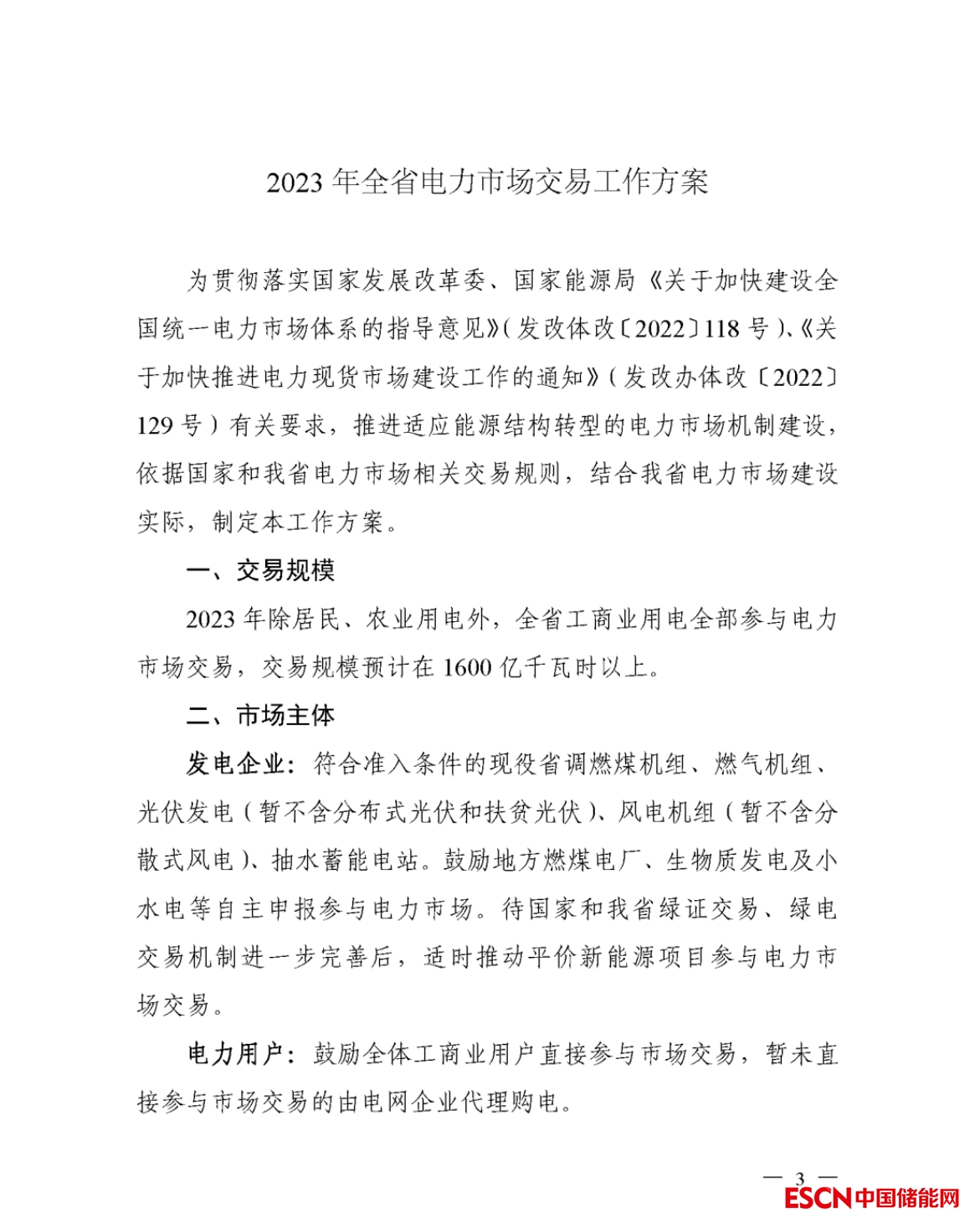 《2023年全省電力市場(chǎng)交易工作方案》原文如下。