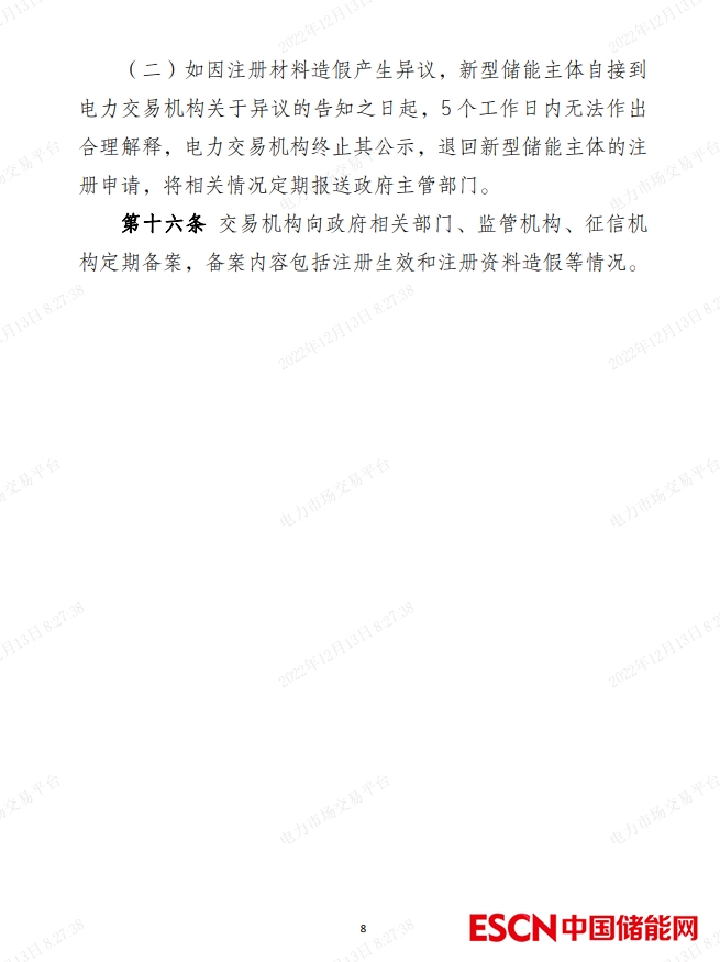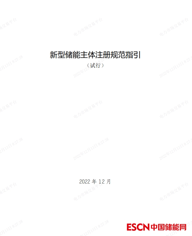 為貫徹落實(shí)國(guó)家發(fā)展改革委、國(guó)家能源局《關(guān)于加快建設(shè)全國(guó)統(tǒng)一電力市場(chǎng)體系的指導(dǎo)意見(jiàn)》(發(fā)改體改〔2022〕118號(hào))、《關(guān)于加快推動(dòng)新型儲(chǔ)能發(fā)展的指導(dǎo)意見(jiàn)》(發(fā)改能源規(guī)〔2021〕1051號(hào))、《關(guān)于進(jìn)一步推動(dòng)新型儲(chǔ)能參與電力市場(chǎng)和調(diào)度運(yùn)用的通知》(發(fā)改辦運(yùn)行〔2022〕475號(hào))有關(guān)要求,規(guī)范完善新型儲(chǔ)能注冊(cè)流程,服務(wù)新型儲(chǔ)能參與電力市場(chǎng),向新型儲(chǔ)能主體提供標(biāo)準(zhǔn)規(guī)范、流程統(tǒng)一、公開(kāi)透明的注冊(cè)服務(wù),北京電力交易中心有限公司與各省電力交易中心有限公司聯(lián)合編制了《新型儲(chǔ)能主體注冊(cè)規(guī)范指引(試行)》,現(xiàn)對(duì)外發(fā)布。