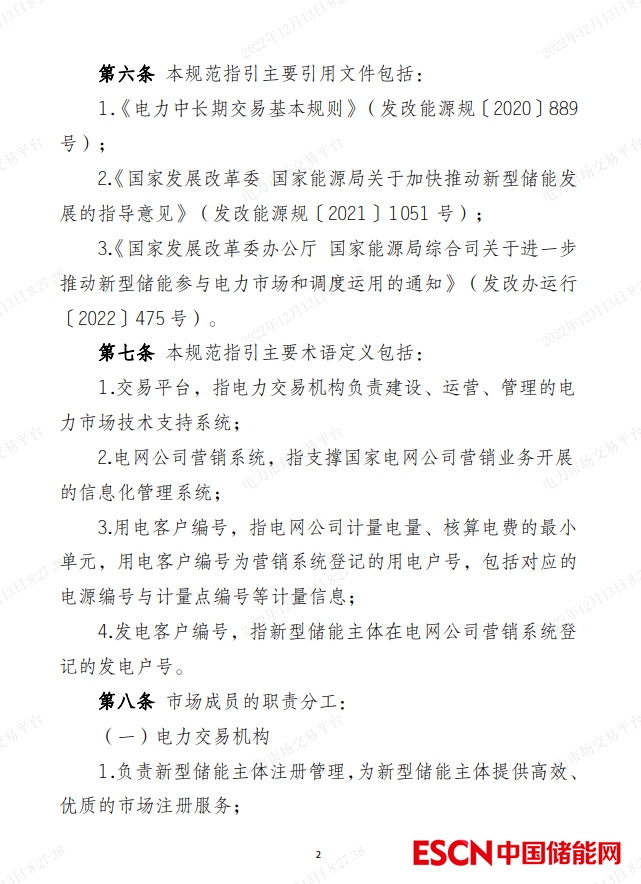 中國(guó)儲(chǔ)能網(wǎng)訊:12月12日,北京電力交易中心有限公司與各省電力交易中心有限公司聯(lián)合編制的《新型儲(chǔ)能主體注冊(cè)規(guī)范指引(試行)》印發(fā)。