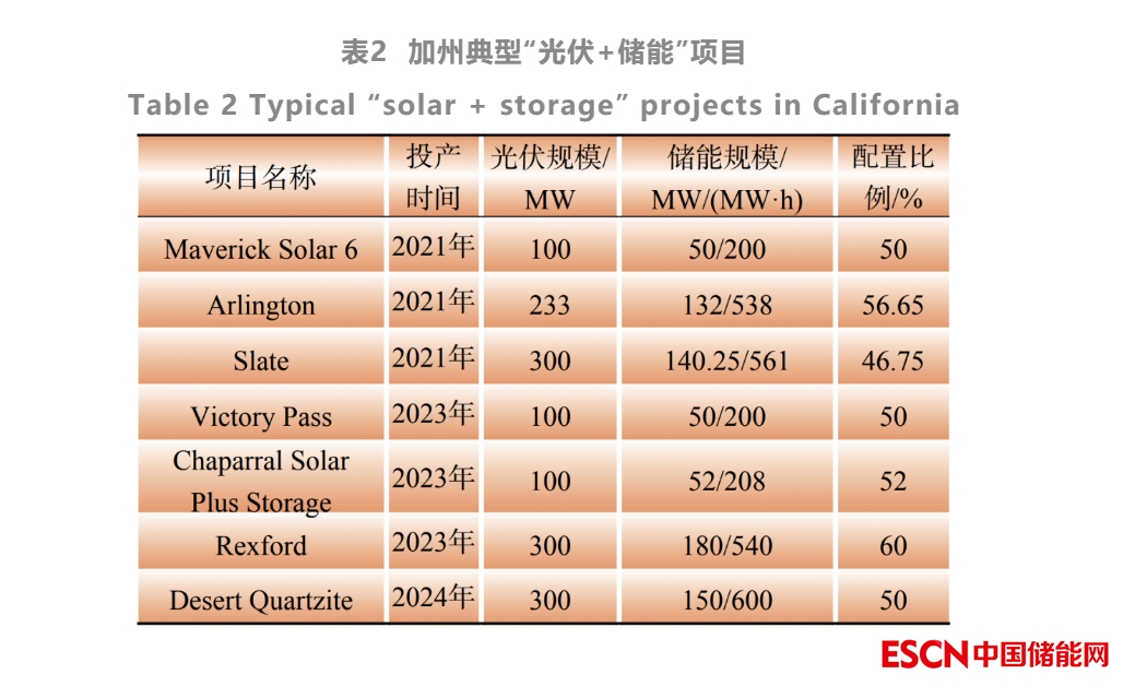 目前,為滿足新能源快速發(fā)展需求,加利福尼亞州正在積極部署“光伏+儲能”項目,如表2所示,儲能配置比例大多超過40%,充放電時長以4 h為主。