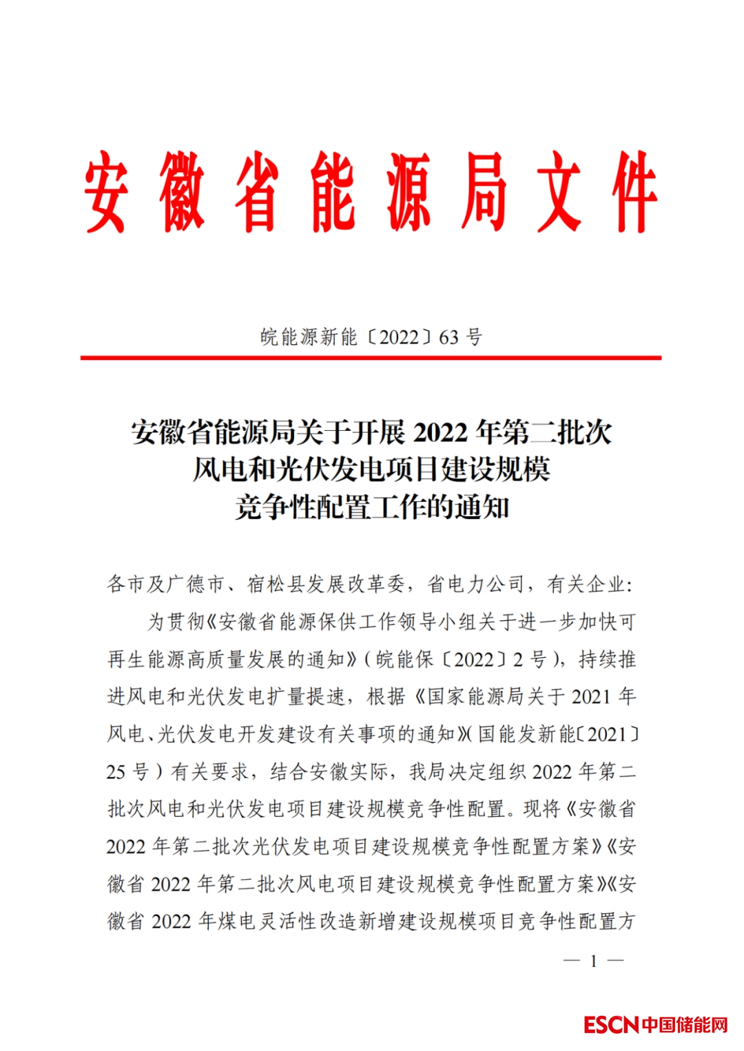 中國儲能網(wǎng)訊:9月9日,安徽省能源局下發(fā)了《關(guān)于開展 2022 年第二批次風(fēng)電和光伏發(fā)電項目建設(shè)規(guī)模競爭性配置工作的通知》,此次光伏、風(fēng)電指標(biāo)各1.5GW,共計3GW。