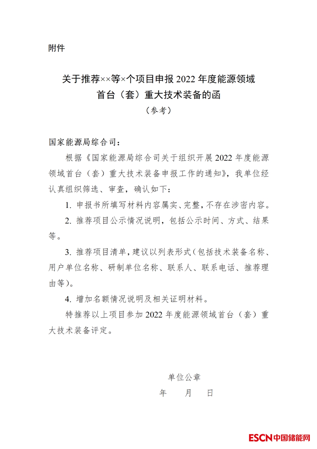 附件:關(guān)于推薦××等×個項目申報2022年度能源領(lǐng)域首臺(套)重大技術(shù)裝備的函(參考)