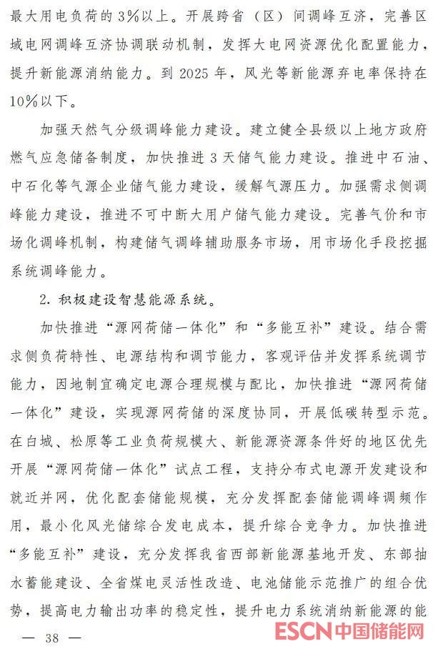 中國儲(chǔ)能網(wǎng)訊:8月24日,吉林省人民政府辦公廳發(fā)布關(guān)于印發(fā)《吉林省能源發(fā)展“十四五”規(guī)劃》的通知。規(guī)劃中提出,加快儲(chǔ)能設(shè)施建設(shè),引導(dǎo)新能源開發(fā)主體在電網(wǎng)側(cè)聯(lián)合開展集中式儲(chǔ)能電站建設(shè),儲(chǔ)能規(guī)模不低于新增新能源裝機(jī)容量的10%,儲(chǔ)能時(shí)長不低于2小時(shí)。提升用戶需求側(cè)響應(yīng)能力,培育柔性電力負(fù)荷,建立健全基于價(jià)格激勵(lì)的負(fù)荷側(cè)響應(yīng)機(jī)制,力爭到2025年需求側(cè)響應(yīng)能力達(dá)到最大用電負(fù)荷的3%以上。開展跨省 (區(qū))間調(diào)峰互濟(jì),完善區(qū)域電網(wǎng)調(diào)峰互濟(jì)協(xié)調(diào)聯(lián)動(dòng)機(jī)制,發(fā)揮大電網(wǎng)資源優(yōu)化配置能力, 提升新能源消納能力。到2025年,風(fēng)光等新能源棄電率保持在10%以下。