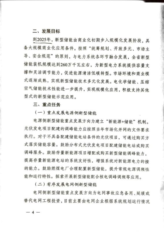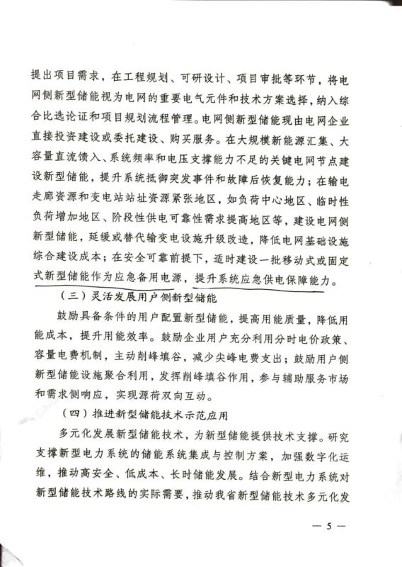 方案指出,到2025年,全省新型儲能裝機規(guī)模達到260萬千瓦左右,鼓勵分布式光伏發(fā)電項目配建儲能電站或購買調(diào)峰服務。電源側(cè)新型儲能重點發(fā)展方向為建立“新能源+儲能”機制。電網(wǎng)側(cè)新型儲能重點發(fā)展方向為電網(wǎng)事故應急備用、延緩或替代電網(wǎng)工程投資。