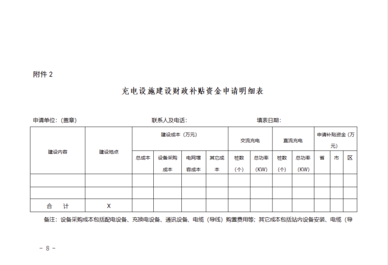 (1)年度充電設(shè)施建設(shè)財政補貼資金申請明細表(附表2);