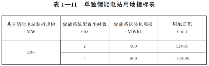 4.2新能源場(chǎng)站配套儲(chǔ)能電站按照150㎡—200㎡/MWh確定用地指標(biāo),用地面積不應(yīng)超過(guò)表1—10的規(guī)定。