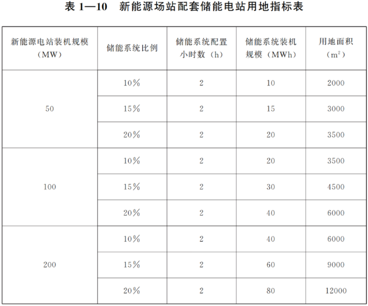 《標(biāo)準(zhǔn)》要求,新能源場(chǎng)站配套儲(chǔ)能電站按照150㎡—200㎡/MWh確定用地指標(biāo),用地面積不應(yīng)超過(guò)表1—10的規(guī)定。