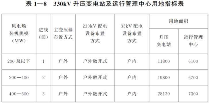 3.升壓變電站及運(yùn)行管理中心用地指標(biāo)