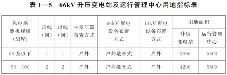 3.4風(fēng)電場(chǎng)35kV升壓變電站及運(yùn)行管理中心用地指標(biāo)可參考66kV升壓變電站及運(yùn)行管理中心用地指標(biāo)執(zhí)行。