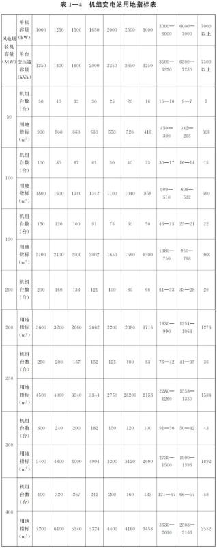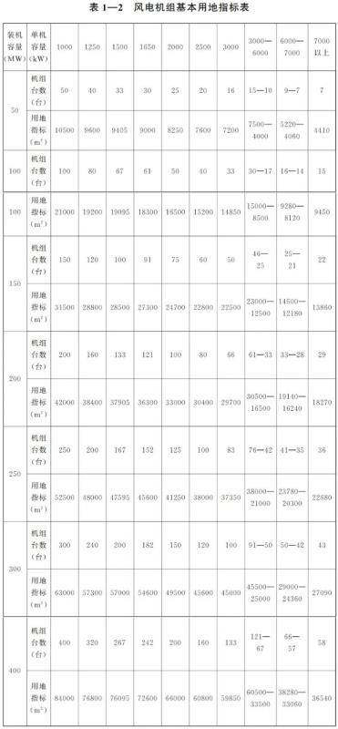 1.風(fēng)電機(jī)組及機(jī)組變電站用地指標(biāo)