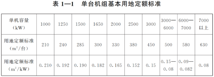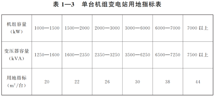 注:1.當(dāng)主變壓器及配電裝置為戶內(nèi)布置時(shí),應(yīng)適當(dāng)扣減升壓變電站用地定額標(biāo)準(zhǔn)。
