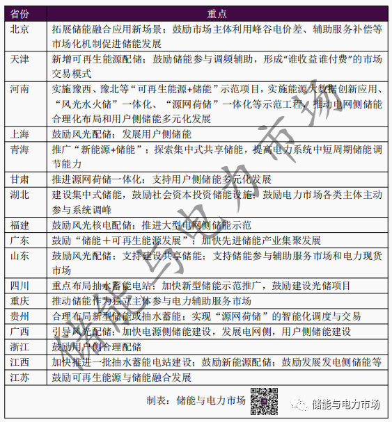各省份“十四五”時(shí)期儲(chǔ)能發(fā)展重點(diǎn)