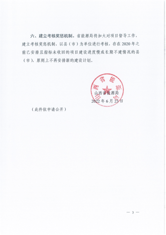 中國(guó)儲(chǔ)能網(wǎng)訊:6月23日,山西省能源局下發(fā)《關(guān)于進(jìn)一步加快推進(jìn)風(fēng)電光伏發(fā)電項(xiàng)目建設(shè)的通知》,提出: