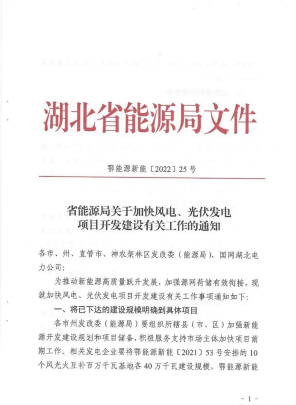 中國儲(chǔ)能網(wǎng)訊:5月26日,湖北省能源局發(fā)布了《省能源局關(guān)于加快風(fēng)電、光伏發(fā)電項(xiàng)目開發(fā)建設(shè)有關(guān)工作》的通知。