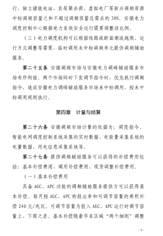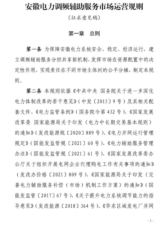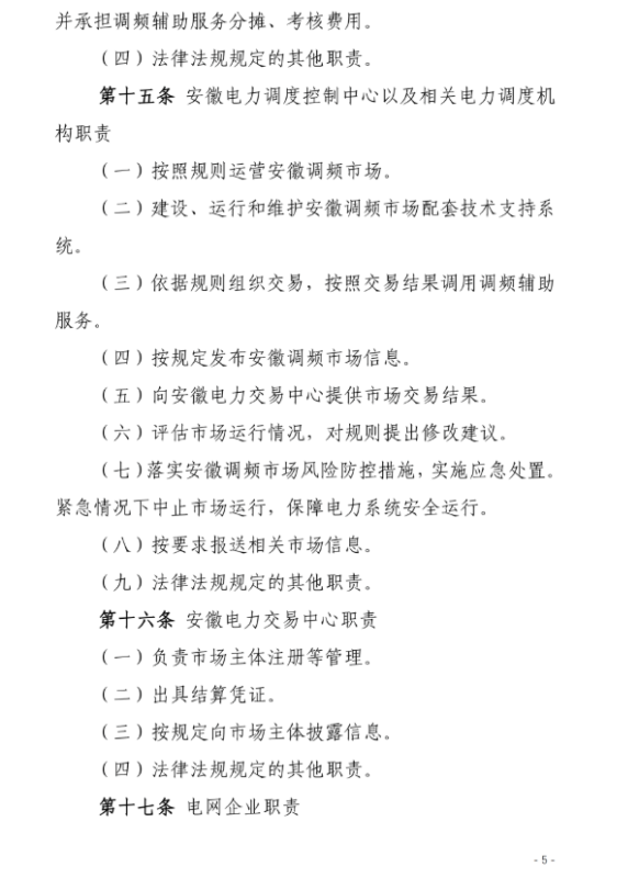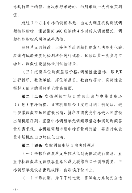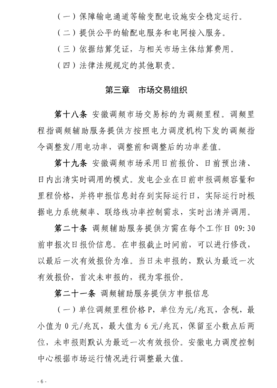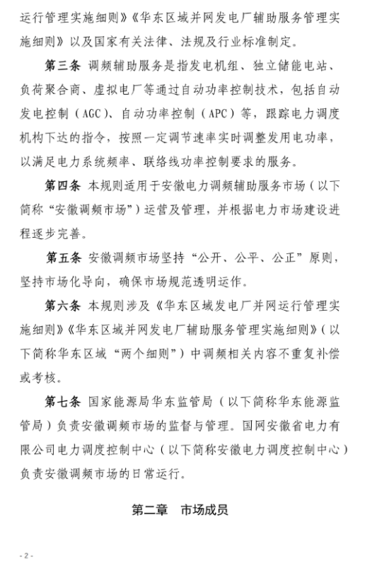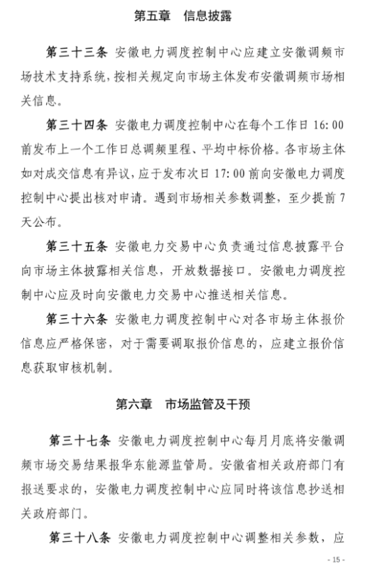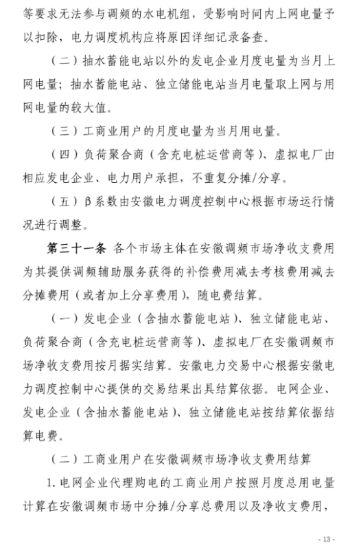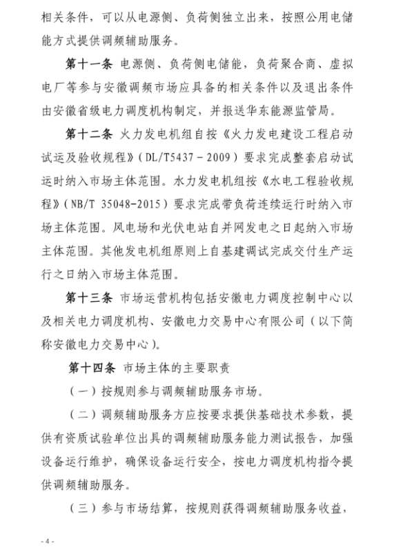 安徽調(diào)頻市場主體包括:安徽電力調(diào)度機構(gòu)調(diào)度管轄范圍內(nèi)并且接入電壓等級在35KV及以上的各類型發(fā)電企業(yè)(含配有儲能裝置的發(fā)電企業(yè)、抽水蓄能電站)、獨立儲能電站、負(fù)荷聚合商(含充電樁運營商等)、虛擬電廠、售電公司、工商業(yè)用戶。