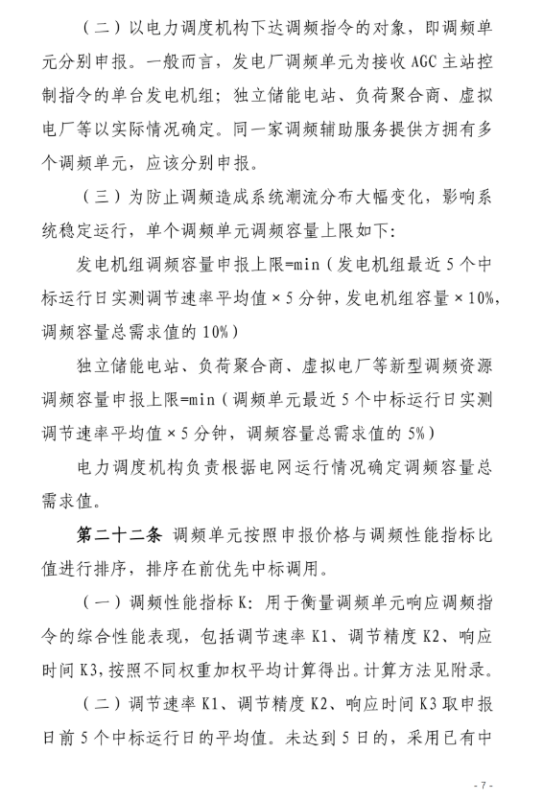 《規(guī)則》相關(guān)條款的設(shè)定體現(xiàn)了2021年底國家能源局發(fā)布的《并網(wǎng)主體并網(wǎng)運行管理規(guī)定》和《電力系統(tǒng)輔助服務(wù)管理辦法》的精神,豐富了調(diào)頻輔助服務(wù)的提供主體,對獨立儲能電站等新興主體規(guī)模、性能、參與方式等做出了相關(guān)規(guī)定,具有一定的實操性。