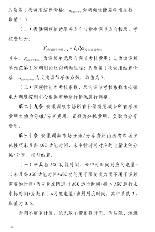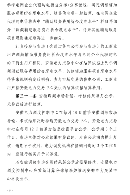 安徽調(diào)頻市場分?jǐn)?分享費用由所有市場主體按照未具備AGC 功能時間、未中標(biāo)時間對應(yīng)的電量比例分?jǐn)?分享,按月結(jié)算。