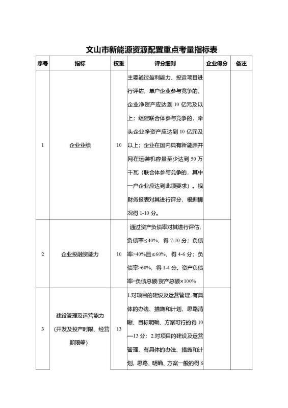 2.文山市新能源資源配置重點考量指標(biāo)表