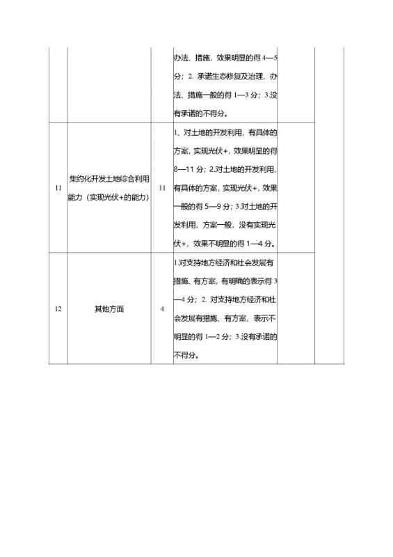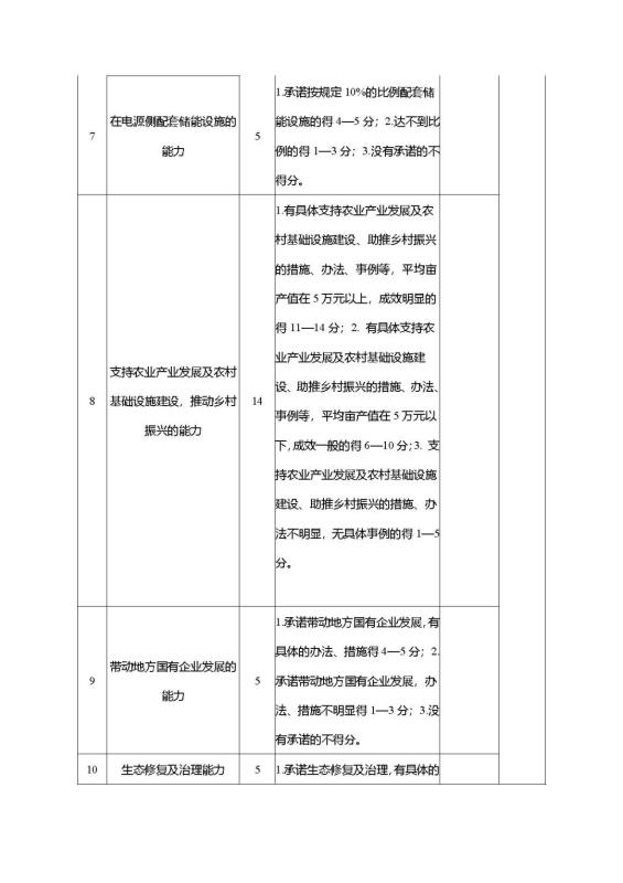 (二)公開招商工作流程:企業(yè)對照本公告第三條要求報名,填報,并在約定時間內(nèi)提交相關(guān)材料。經(jīng)我方組織相關(guān)部門,按照評分細(xì)則(文山市新能源資源配置重點考量指標(biāo)表),對投資企業(yè)的整體實力、經(jīng)濟(jì)產(chǎn)業(yè)發(fā)展的貢獻(xiàn)、制定環(huán)境保護(hù)措施等因素進(jìn)行綜合評分,按一定程序報批后,最終確定1—2家企業(yè)為項目業(yè)主,簽訂正式的投資協(xié)議。