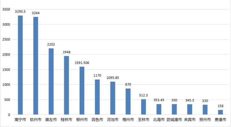 124個項目按地區(qū)分解情況,南寧、欽州和崇左分列前三