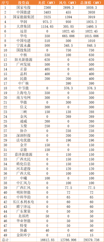 電源項目推進計劃表匯總顯示,共包括29.38GW的風(fēng)光項目,其中光伏16.6GW、風(fēng)電12.76GW。根據(jù)業(yè)主梳理情況來看,國家電投、中國能建、國家能源集團分別以5.06GW、3.94GW、3.92GW的規(guī)模位列前三。