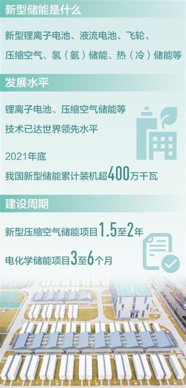 國家能源局有關(guān)負(fù)責(zé)人介紹,“十三五”以來,我國新型儲能實(shí)現(xiàn)由研發(fā)示范向商業(yè)化初期過渡,實(shí)現(xiàn)了實(shí)質(zhì)性進(jìn)步。鋰離子電池、壓縮空氣儲能等技術(shù)已達(dá)到世界領(lǐng)先水平,2021年底新型儲能累計裝機(jī)超過400萬千瓦。