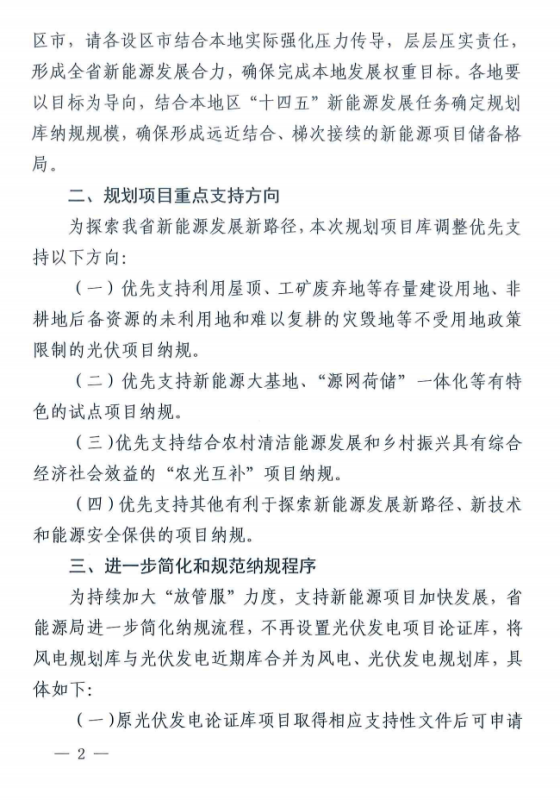 通知明確,為持續(xù)加大“放管服”力度,支持新能源項目加快發(fā)展,省能源局進(jìn)一步簡化納規(guī)流程,不再設(shè)置光伏發(fā)電項目論證庫,將風(fēng)電規(guī)劃庫與光伏發(fā)電近期庫合并為風(fēng)電、光伏發(fā)電規(guī)劃庫,具體如下: