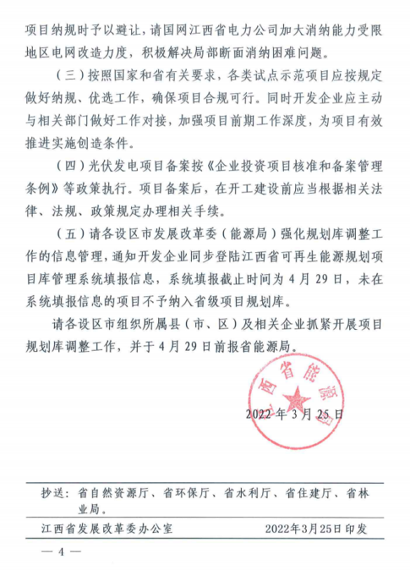 此外,通知還指出,請各設(shè)區(qū)市組織所屬縣(市、區(qū))及相關(guān)企業(yè)抓緊開展項目規(guī)劃庫調(diào)整工作,并于4月29日前報江西省能源局。