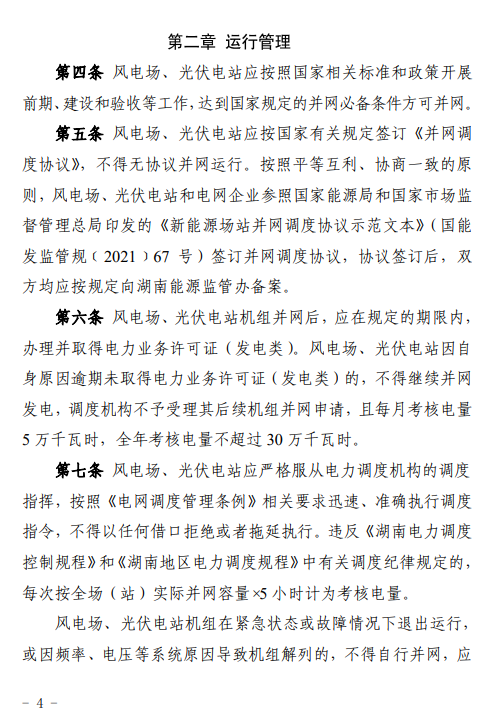 本細(xì)則適用魚(yú)并入湖南電網(wǎng)、納入市(州)級(jí)及以上電力調(diào)度機(jī)構(gòu)調(diào)度管理的風(fēng)電場(chǎng)、光伏電站。新建和擴(kuò)建風(fēng)電場(chǎng)、光伏電站自第一臺(tái)機(jī)組并入電網(wǎng)之時(shí)起納入本細(xì)則管理。