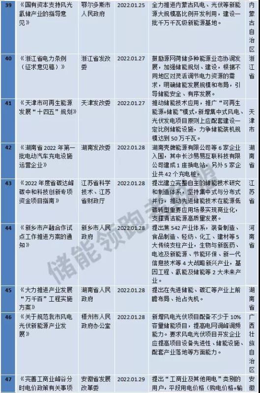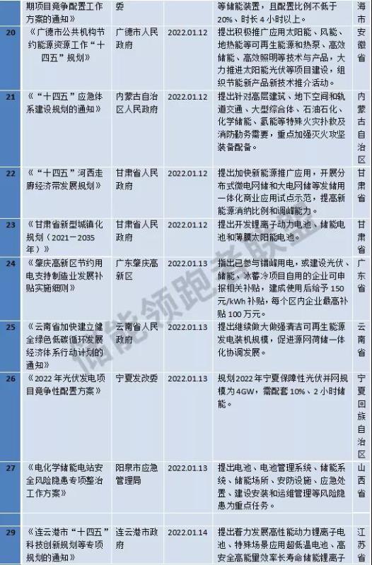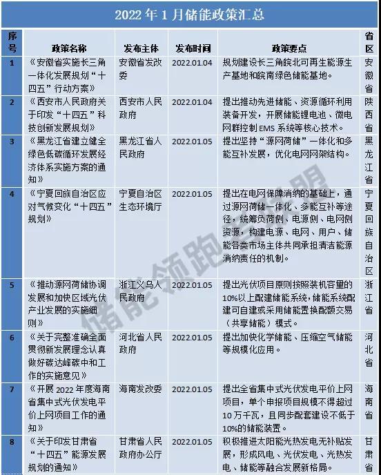 2022年1月27日,天津發(fā)改委發(fā)布《天津市可再生能源發(fā)展“十四五”規(guī)劃》,提出推動(dòng)儲(chǔ)能技術(shù)應(yīng)用,推廣“可再生能源+儲(chǔ)能”模式,新增集中式風(fēng)電、光伏發(fā)電項(xiàng)目原則上應(yīng)配套建設(shè)一定比例儲(chǔ)能設(shè)施,力爭(zhēng)儲(chǔ)能裝機(jī)規(guī)模達(dá)到50萬(wàn)千瓦。