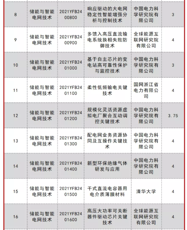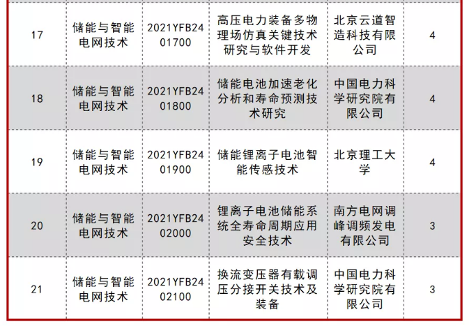 2021年度(十四五儲能)國家重點(diǎn)研發(fā)計劃重點(diǎn)專項立項公示進(jìn)展