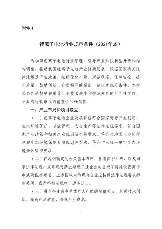 1.鋰離子電池行業(yè)規(guī)范條件(2021年本)