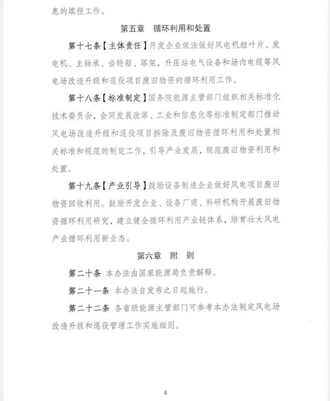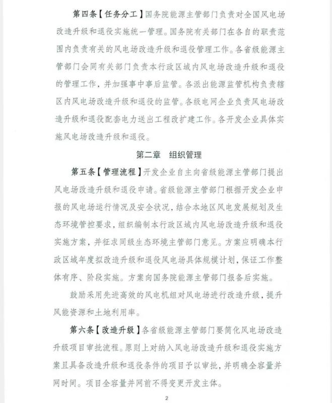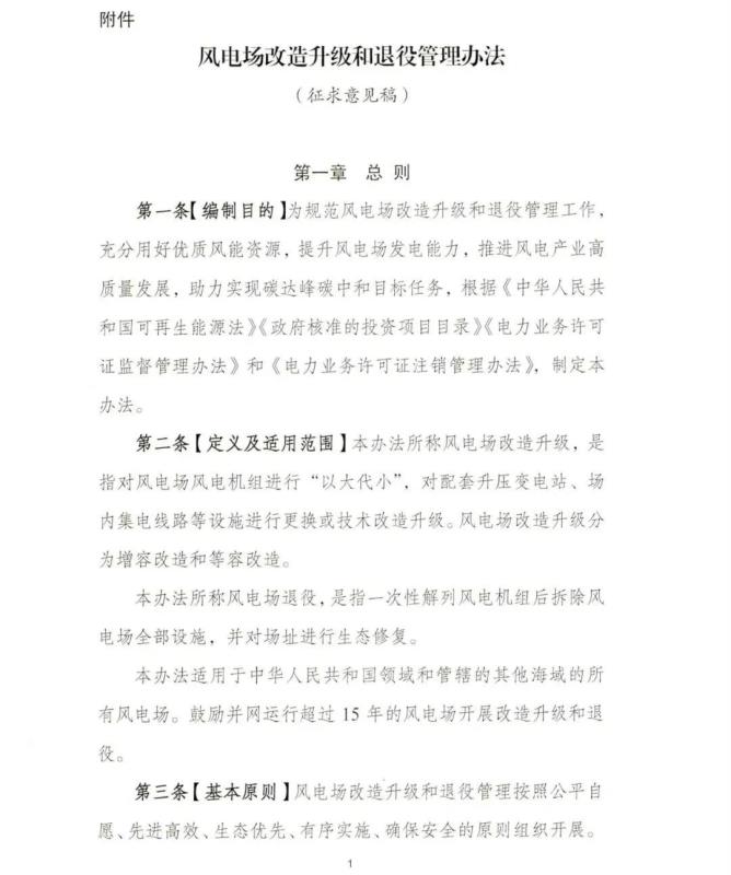 《征求意見稿》明確,該辦法適用于中華人民共和國領域和管轄的其他海域的所有風電場。鼓勵并網(wǎng)運行超過15年的風電場開展改造升級和退役。