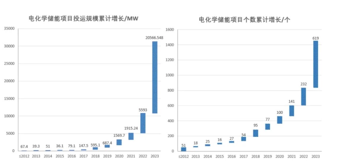 圖1 我國電化學儲能項目歷年投運規(guī)模及數(shù)量增長情況