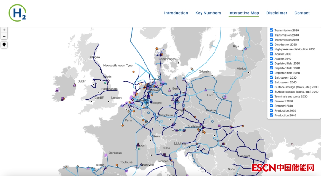 歐洲天然氣運(yùn)輸系統(tǒng)運(yùn)營商網(wǎng)絡(luò) (European Network of Transmission System Operators for Gas,簡(jiǎn)稱 ENTSOG)、歐洲氫能骨干倡議(European Hydrogen Backbone)以及GIE、CEDEC、Eurogas、GEODE、GD4S等機(jī)構(gòu)啟動(dòng)了一個(gè)自下而上的過程,收集所有相關(guān)的氫能基礎(chǔ)設(shè)施項(xiàng)目,目的是將數(shù)據(jù)呈現(xiàn)在一個(gè)交互式、用戶友好且可供公眾訪問的歐洲氫能地圖,供利益相關(guān)者和政策制定者使用。交互式氫能基礎(chǔ)設(shè)施地圖匯集了天然氣輸送系統(tǒng)運(yùn)營商(TSO)、配送系統(tǒng)運(yùn)營商、存儲(chǔ)系統(tǒng)運(yùn)營商和液化天然氣系統(tǒng)運(yùn)營商的氫能視角和項(xiàng)目,以及在整個(gè)價(jià)值鏈上開發(fā)聯(lián)合體項(xiàng)目的第三方推動(dòng)者。